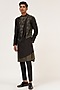 Featuring a black asymmetrical kurta in cotton silk chanderi base with embroidery. It is paired with pant-cut pyjama pants. This attire would be an excellent fit for any festive occasion or sangeet ceremonies.