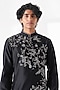 Featuring a black kurta in cotton silk chanderi base with motif embroidery and a mandarin collar. It is paired with a pant-style pyjama. Style it with mojaris for a festive occasion, a cultural event, a haldi, a wedding, or an engagement ceremony.