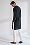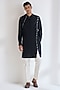 Featuring a black kurta in cotton silk base with thread embroidery. It is paired with terry cotton pyjama pants. Perfect attire for any festive occasion or sangeet ceremony, exuding traditional charm and timeless elegance.