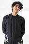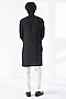 Featuring a black kurta in cotton silk base with a city skyline motif, thread embroidery, and an asymmetrical layered overlay. It is paired with a pant-style pyjama. Style it with mojaris for a festive occasion, a cultural event, a haldi, a wedding, or an engagement ceremony.
