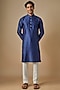 Featuring a blue kurta in silk base. It is paired with pants. Perfect wear for a festive occasion or pooja ceremony, exuding traditional charm and elegance.
