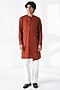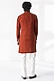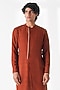 Featuring a burnt orange kurta in matka silk base with thread embroidery. Style it with pants and mojaris for a festive occasion, a cultural event, a wedding or an engagement ceremony.