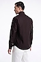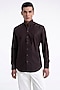Featuring a dark brown shirt in cotton satin base with a mandarin collar and side flap snap buttons detail. Style it with pants and shoes for casual or brunch wear, exuding charm and elegance.