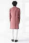 Featuring a dusty rose kurta in cotton silk base with embroidery and a contemporary angled placket design. It is paired with a pant-style pyjama. Style it with mojaris for a festive occasion, a cultural event, a haldi, a wedding, or an engagement ceremony.