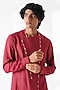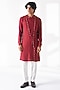 Featuring an earthy red textured kurta in cotton silk base with hem embroidery. It is paired with a pant-style pyjama. Style it with mojaris for a festive occasion, a cultural event, a wedding or an engagement ceremony.