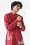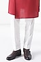 Featuring an earthy red kurta in cotton silk base with a city skyline motif, thread embroidery, and an asymmetrical layered overlay. It is paired with a pant-style pyjama. Style it with mojaris for a festive occasion, a cultural event, a haldi, a wedding, or an engagement ceremony.