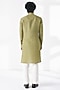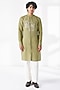 Featuring a fern green kurta in matka silk base with motif embroidery. It is paired with a pant-style pyjama. Style it with mojaris for a festive occasion, a cultural event, a haldi, a wedding, or an engagement ceremony.