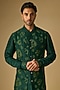 Featuring a jade mist kurta in silk base with embroidery. It is paired with pants. Accentuate it with kolhapuris or embroidered juttis for an elegant yet easy going look, perfect for pooja ceremonies, festive gatherings or mehendi celebrations.