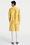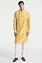 Featuring a marigold kurta in chanderi base with geometric print and thread embroidery. It is paired with terry cotton pyjama pants. Perfect attire for any festive occasion or sangeet ceremony, exuding traditional charm and timeless elegance.