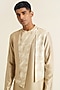 Moonrock Beige Cotton Silk Chanderi Asymmetric Embroidered Kurta Set