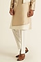 Featuring a moonrock beige asymmetric layered kurta in cotton silk chanderi base with embroidery. It is paired with pyjama pants. Perfect for a festive, engagement or sangeet ceremony.