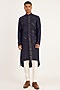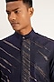 Featuring a navy blue hybrid kurta in cotton silk and raw silk base with embroidery. It is paired with contrasting pyjama pants.