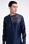 Featuring a navy kurta in silk base with zari embroidery. It is paired with terry cotton pyjama pants. Perfect attire for any festive occasion or sangeet ceremony, exuding traditional charm and timeless elegance.