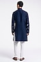 Featuring a navy kurta in raw silk base with embroidery. It is paired with terry cotton pyjama pants. Perfect attire for any festive occasion or sangeet ceremony, exuding traditional charm and timeless elegance.