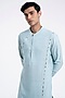 Featuring a powder blue kurta in cotton silk base with thread embroidery. It is paired with terry cotton pyjama pants. Perfect attire for any festive occasion or sangeet ceremony, exuding traditional charm and timeless elegance.