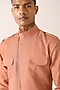 Featuring a salmon pink short kurta in cotton linen base with asymmetrical zipper. This contains only one piece.