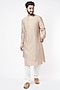 Featuring a silver sand kurta in cotton silk base with embroidery. It is paired with contrasting pyjama pants.