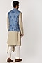 Featuring a sky blue nehru jacket in silk base with digital print. It has a button closure and is woven. This contains only one piece.