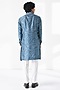 Featuring a storm blue kurta in cotton silk chanderi base with abstract print. It is paired with a pant-style pyjama. Style it with mojaris for a festive occasion, a cultural event, a wedding or an engagement ceremony.