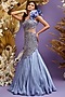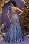 Blue Satin Georgette Hand Embroidered Ruffled Gown