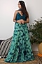 Featuring a bluish green lehenga in silk slub and flat chiffon base with sequins hand embroidery and tie-dye. It is paired with a matching ruffled blouse and a dupatta having frill hem.