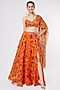 Orange Printed & Embroidered Skirt Set