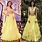 Featuring a pastel yellow blouse in silk base with hand embroidery. It is paired with a matching layered skirt in satin organza base and a chiffon dupatta.