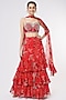 Red Floral Printed Layered Lehenga Set