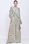 Featuring ash grey trousers in blended linen base with machine embroidery. Accentuate it with a top or kaftan, dangler earrings and flats for a festive occasion or family gathering.