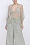 Featuring an ash grey draped kaftan in net base with hand embroidery. Accentuate it with pants, diamond earrings and heels for a complete look.