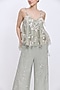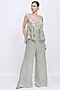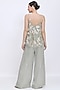 Featuring an ash grey camisole in net and polyester satin base with cutwork straps, parsi gara hand and machine embroidery. Accentuate it with pants, dangler earrings and heels for a cocktail or festive occasion.
