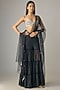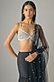 Featuring a black blouse in net and poly satin base. It is paired with a chiffon sharara and a net dupatta. Accentuate it with dangler earrings and heels for a festive occasion or sangeet ceremony.