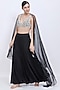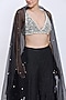 Featuring a black blouse in net and polyester satin base with v-neckline and hand embroidery. Accentuate it with a saree, diamond earrings and heels for a cocktail, sangeet or wedding ceremony.