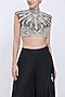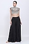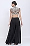 Featuring a black necklace bib in net and polyester satin base with hand embroidery. Accentuate it with a blouse, diamond earrings and heels for a cocktail, reception, engagement or sangeet ceremony.