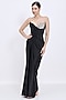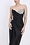 Featuring a black draped gown in net, polyester satin and blended satin base with a power neckline and diamond encrusted bodice on one side. Accentuate it with diamond statement jewellery, a sleek clutch, and high heels for a complete look, perfect for a cocktail or an after-party.