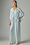 Featuring a blue jumpsuit in blended satin base. It is paired with a draped kaftan. Accentuate it with stud earrings, a clutch and metallic heels for a cocktail, dinners or evening soirees.
