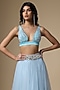 Featuring a blue skirt in net and poly satin base. Accentuate it with a crop top, dangler earrings and heels for a complete look.