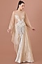 Featuring a champagne gown in foil and net base with draped wings and hand embroidered waist. Accentuate with dangler earrings and heels for evening wear or cocktail party.
