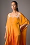 Featuring a chrome saffron shaded kaftan in blended satin base with ivory cutdana, silver mirror, and an attached belt. Style it with wedges, a clutch, and some fine jewellery for a refined ensemble, ideal for formal evenings or parties.