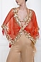 Featuring a flame red twisted kaftan top in sheer net base with sequins hand embroidery and pearl feather tassels. This contains only one piece.