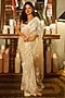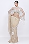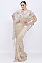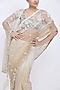 Ivory-Khaki Gold Shaded Net Hand Embroidered Saree