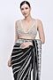 Featuring an ivory blouse in net and polyester satin base with v-neckline and hand embroidery. Accentuate it with a saree, diamond earrings and heels for a cocktail, sangeet or wedding ceremony.