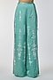 Featuring jade blue trousers in blended linen base with poth and mirror work. Accentuate it with top, statement earrings and heels for festive brunches and evening soirees.