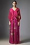 Featuring a jamun kaftan in blended satin base with embroidery. Accentuate it with pants, statement earrings and heels for an evening look.