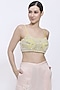 Featuring a lemon-colored bustier in net and polyester satin base with hand embroidery. Accentuate it with pants, diamond earrings and heels for a cocktail or evening party.