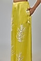 Featuring lemon yellow trousers in blended satin base with sequins embroidery. Accentuate it with a kaftan, dangler earrings and mules for festive gatherings or haldi ceremony.