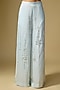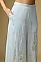 Featuring light blue trousers in blended linen base with diamond snowflake detailing. Accentuate it with a structured blouse or an embroidered crop top, statement earrings, a sleek clutch and elegant heels for a stylish ensemble, ideal for festive gatherings, cocktail evenings or celebratory dinners.