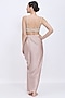 Featuring a light mushroom-colored draped skirt in blended satin base. Accentuate it with a blouse, diamond earrings and heels for a cocktail, sangeet or engagement ceremony.