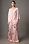 Featuring a light pink draped kaftan in blended satin base with silver latkan. Accentuate it with pants, statement earrings and heels for evening wear, date nights or family gatherings.