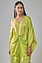 Featuring a lime green kaftan in blended satin base. Accentuate it with trousers, dangler earrings and mules for festive gatherings or mehendi ceremony.